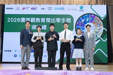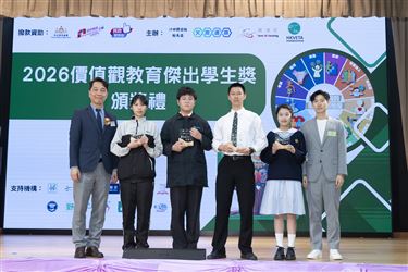 5A 黃坤輝 同學憑藉強烈的責任感及對正確價值觀的堅持,榮獲「2026 年價值觀教育傑出學生獎」。黃同學的獲獎,有力地肯定了本校在推動價值觀教育上的成效。他展示了學生如何將抽象的「責任感」轉化為具體的日常行動,成為「建立正向校園氛圍」目標的活教材,為全校學生樹立了品德榜樣。
