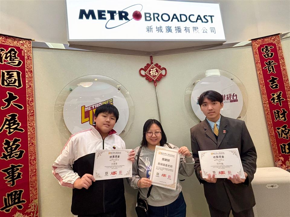 早前3A方意喬通過了由文聯會第八屆《小嘴巴.大世界—電台小主持培訓計畫》面試,完成了資深電台文化節目主持人葉泳詩小姐主理的四節培訓課堂,並已於1月18日在新城電台作為助理主持完成兩集節目錄製,有關節目將分別在2月18和25日播出.