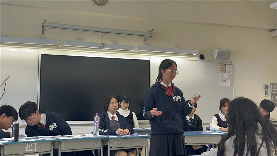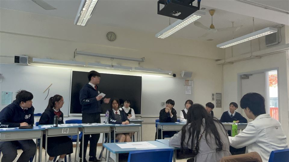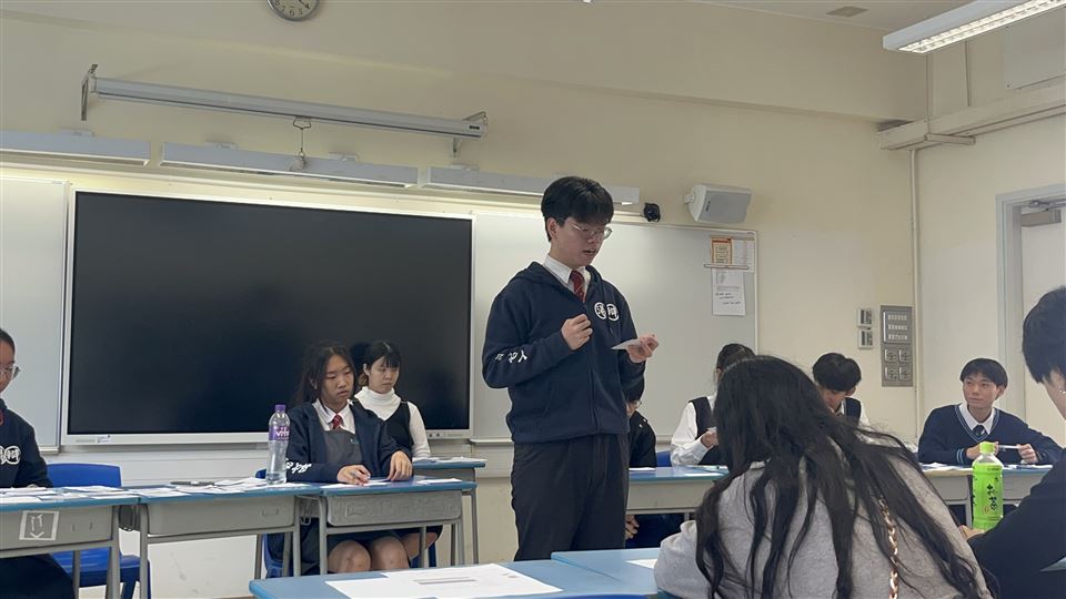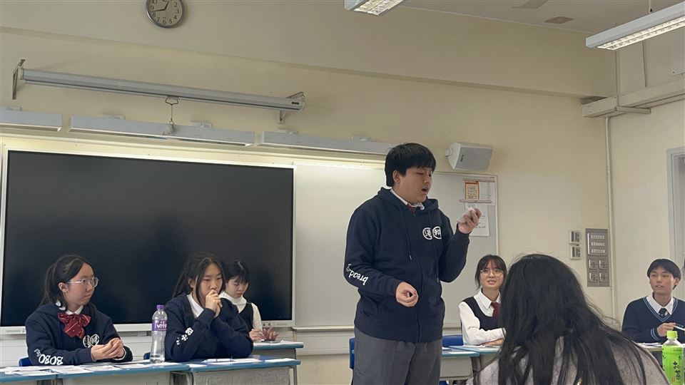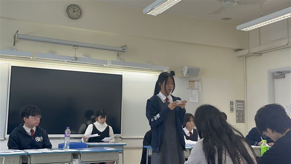 我校主辯為3A 吳欣怡同學,一副為5A陳宏一同學,二副為5A鄭家慧同學,結辯為3A方意喬同學。我校最終以2:0勝出比賽,而方意喬同學亦奪得本場最佳辯論員。