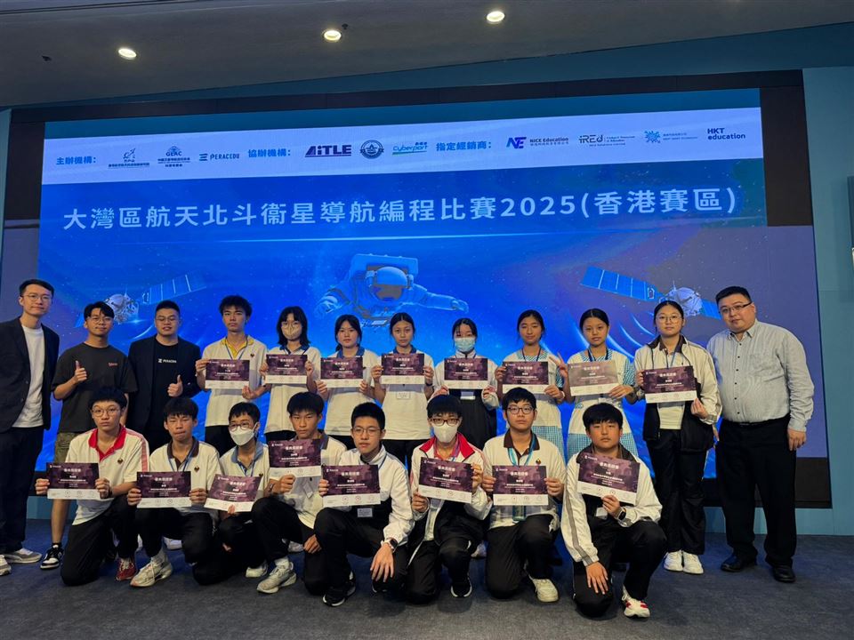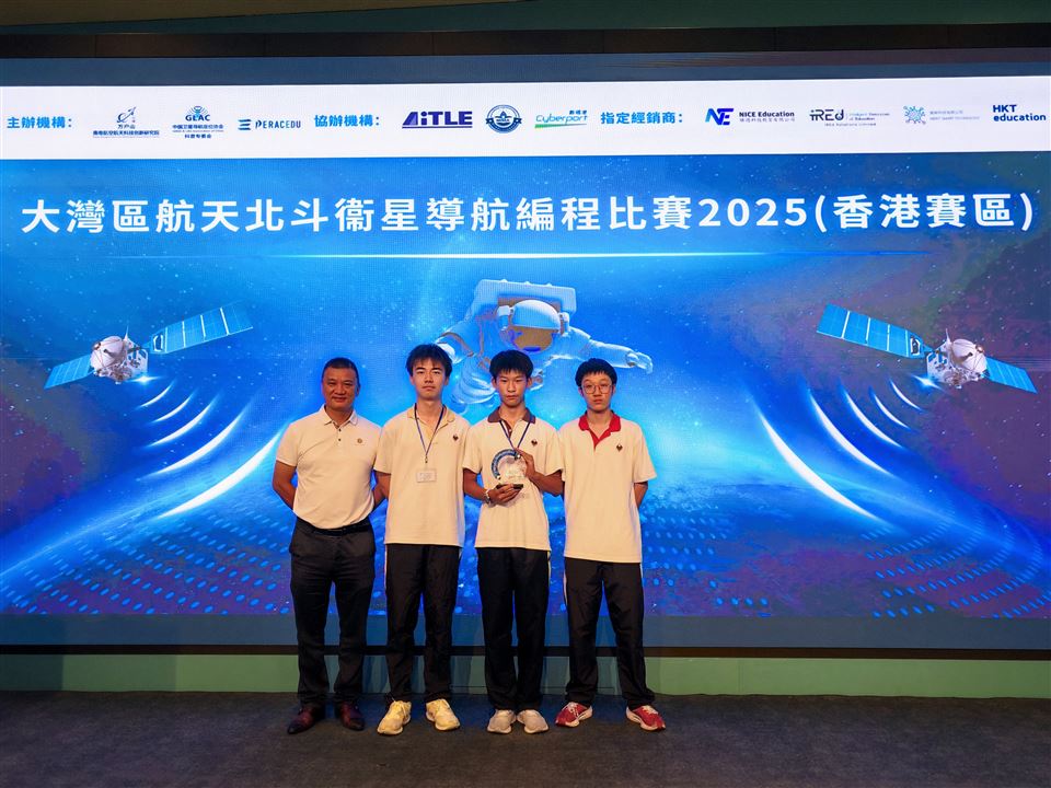 2025年6月28日,本校學生參加由中國衛星導航定位協會、南粵航空航天科技創新研究院及PERAC Eduverse Limited聯合主辦的「大灣區航天北⽃衛星導航編程比賽(香港區)」。比賽以「航天科技賦能未來」為核心,於數碼港舉行,吸引全港多所中學參與,聚焦北斗衛星導航技術的創新應用,涵蓋環境監測、災難預警等關鍵領域。