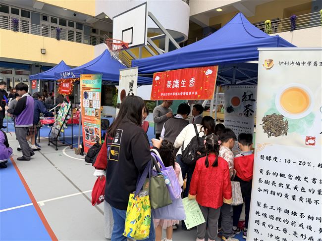 2026-02-12宣道會葉紹蔭紀念小學「心繫家國——中國非遺大觀園」 中華文化日本校是次攤位主題為「茶識生香」,同學既在攤位為嘉賓、家長、小學生們泡茶,我們亦在ai的幫助下,設計了兩個以茶為主題的遊戲供學生遊玩,藉此推廣中華文化。